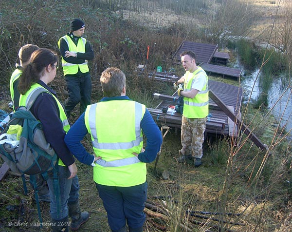 KMi members volunteered their services to local environment charity The Greensand Trust today to help build a boardwalk, made from recycled plastic, in Leighton Buzzard. Ledburn Pit is one of a number of worked-out sand quarries in the Leighton area and the GST are using money from Landfill Tax and other sources, plus volunteer labour, to transform them into wildlife havens and places to visit, particulaly for kids from local schools as part of their environmental learning.