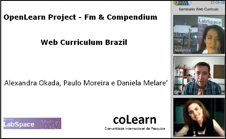 Paulo Moreira (Minho), Daniela Melare (UNED) and Ale Okada (KMi) participated as keynotes in the Web Curriculum Conference in Brazil describing the best learning projects from CoLearn Community with KMi Tools: Compendium and FlashMeeting Project.