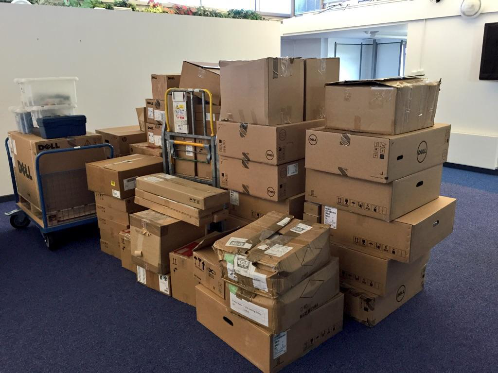 It all began with the team tweeting a picture of the stacks of boxes containing data hub equipment they would be building at UCMK in Central Milton Keynes. Since then it’s been non-stop – installation of power distribution, blade chassis, management servers, networking and firewall equipment, including connecting everything up with hundreds of metres of both copper and fibre cabling.