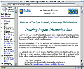 Dearing Report Discussion Site: http://kmi.open.ac.uk/Dearing/ D3E (Digital Document Discourse Environment) has been used to generate a web site to...