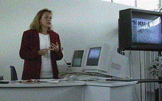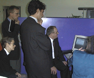 Dr. Stuart Monro, Scientific Director, and Nina Ludgate (Event Communications) visited KMi's MultiMedia Enabling Technologies group to see protoype...
