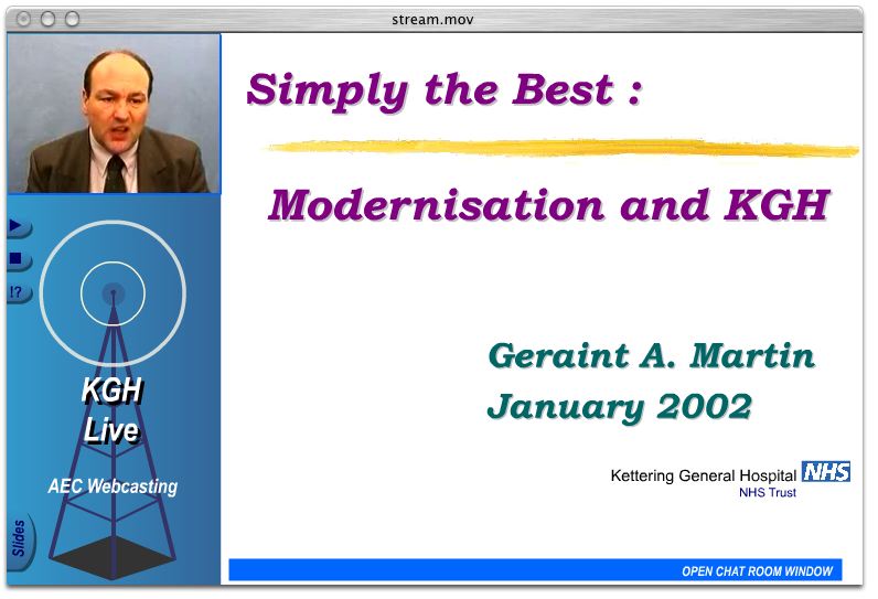 Kettering General Hospital chief executive Geraint Martin has made a pioneering webcast to kick off the AEC project webcasting series. On Thursday,...