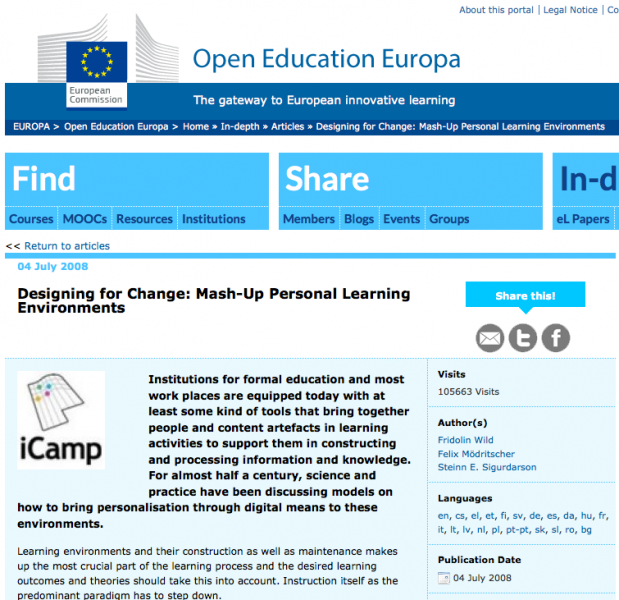 The 2008 article of KMi's Fridolin Wild about personal learning environments has reached the first 100,000 hits on the European Commission portal...