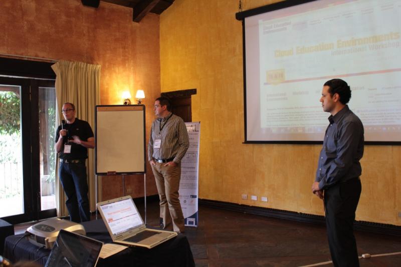 On the first day, 14 peer-reviewed papers were presented, covering a wide range of topics around Cloud Education Environments, including tools, methodologies, pedagogical issues and visions. Geographically speaking, Europe and Latin America were equally represented.